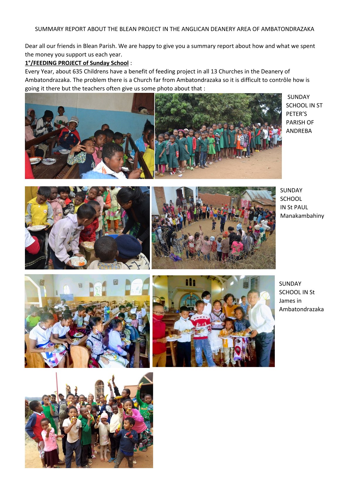 The project for planting vegetables by the Mothers Union in Mahatsinjo and the pig farming there is going well. The young man called Tendry is now in 2nd year class. He is preparing to be a priest. I want to thank Blean for supporting him for his school fees.