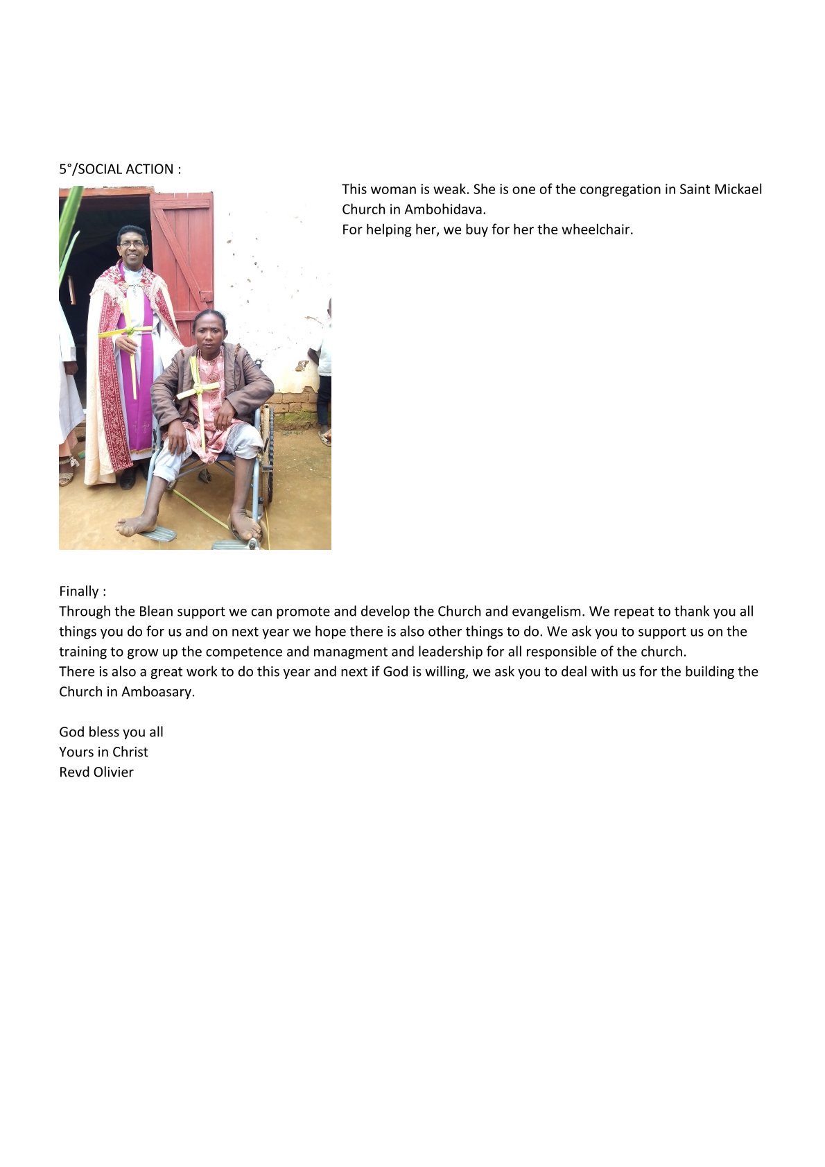 With joy we greet you all for the occasion of Christmas. The Word of God is God Himself that took the human flesh. He is Emmanuel, God with us. The Son of God become Human being so that the human being becomes the son of God. That is the great joy for us and we all partake this grace and become also the source of grace of God. We all in the parish of Ambatondrazaka and area deanery feel that you all in Blean is the grace of God for us. Tahnk you for all supporting you did for our deanery and parish. We hope that it may be continued under the grace of the Lord.