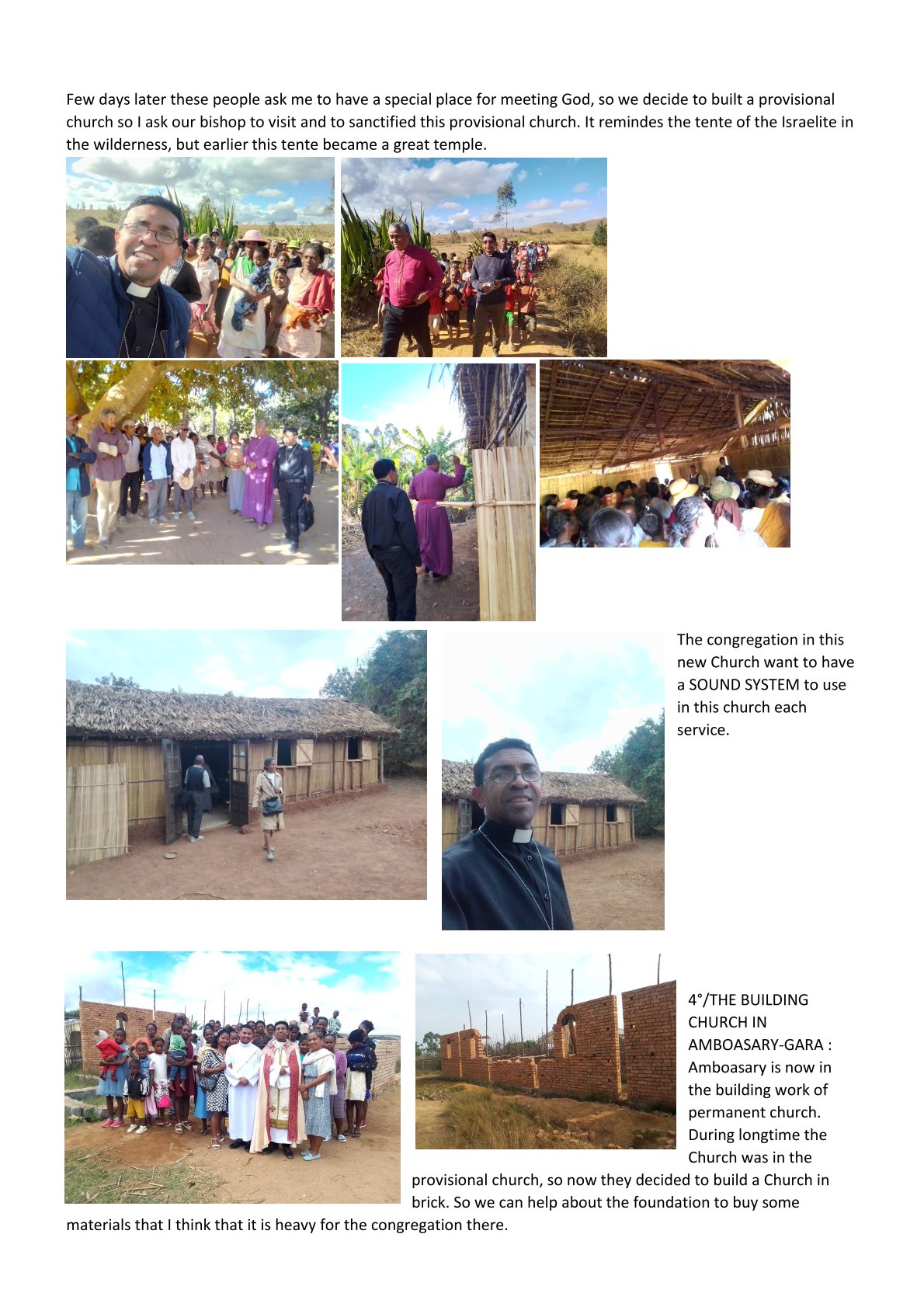 A new permanent Church is now being built in Amboasary mainly though the self-help efforts of the local congregation.